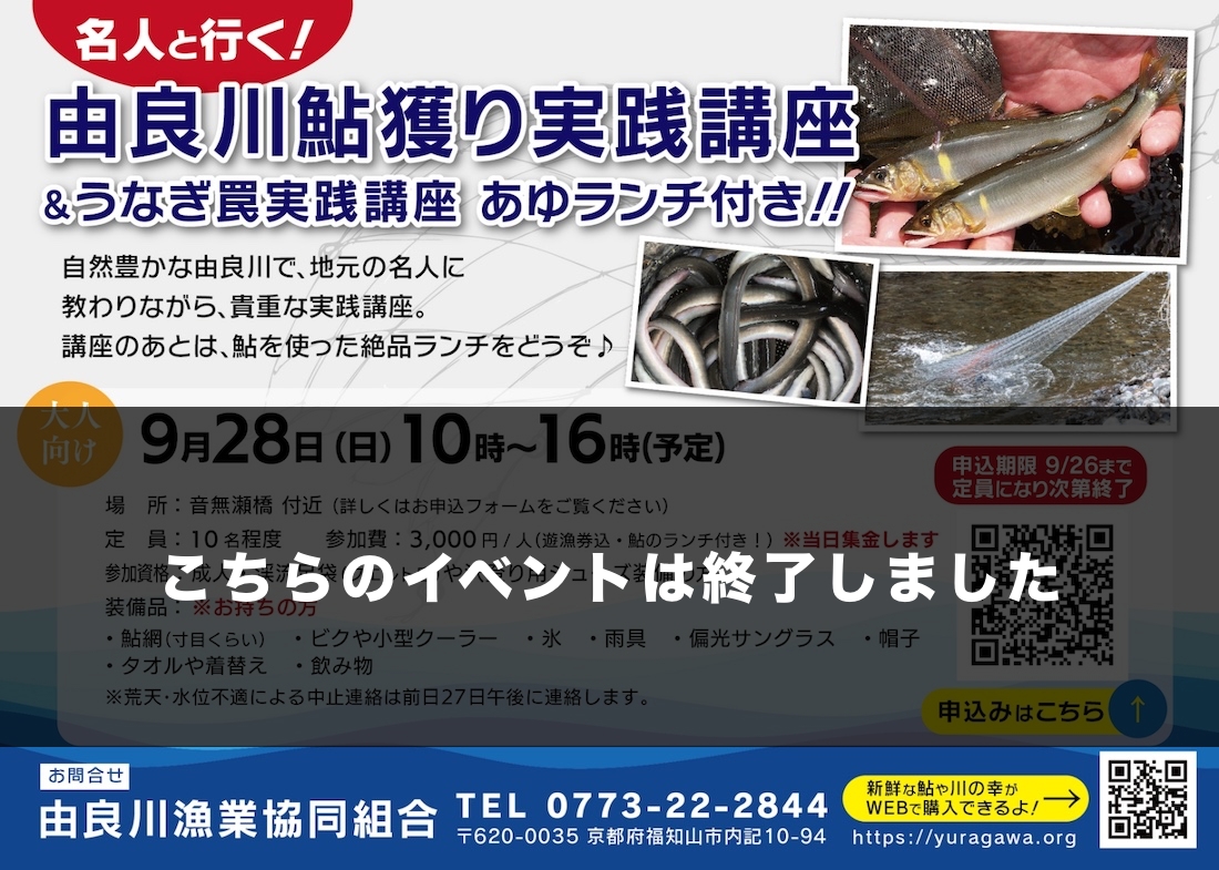春には若狭湾から天然の鮎が多く遡上して友釣り、素掛けを楽しんで頂けます。他にも渓流釣り、シーバスなど様々な釣りができるのも由良川の魅力です。